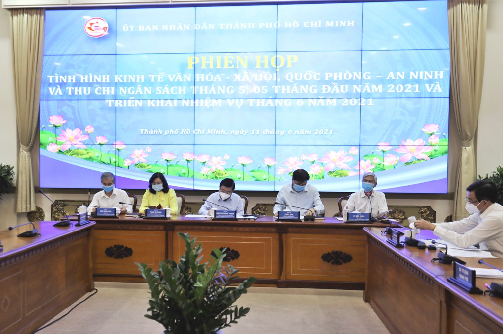 Chiều ngày 11/6, UBND TPHCM họp về tình hình kinh tế- xã hội 5 tháng đầu năm 2021 và triển khai nhiệm vụ những tháng tiếp theo. Chủ tịch UBND TPHCM Nguyễn Thành Phong chủ trì cuộc họp.