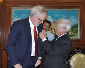 Chiều cùng ngày, tân Đại sứ Hoa Kỳ David Bruce Shear cũng đến chào ra mắt Bí thư Thành ủy TPHCM Lê Thanh Hải nhân dịp nhận công tác tại Việt Nam.