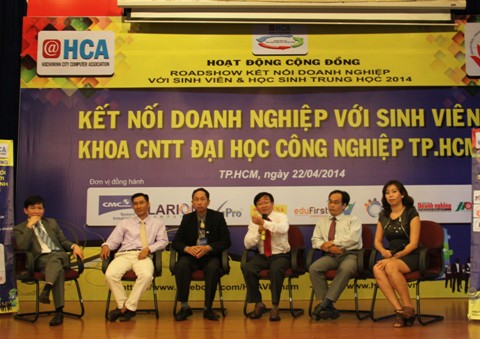 (HCM CityWeb)-Ngày 22-4, hoạt động cộng đồng Roadshow “Kết nối doanh nghiệp với Sinh viên-Học sinh” 2014 đã đến với trường Đại học Công nghiệp TPHCM, là điểm đến thứ 5 trong năm 2014 của chương trình phát triển nguồn nhân lực CNTT do Hội Tin học TPHCM tổ chức.