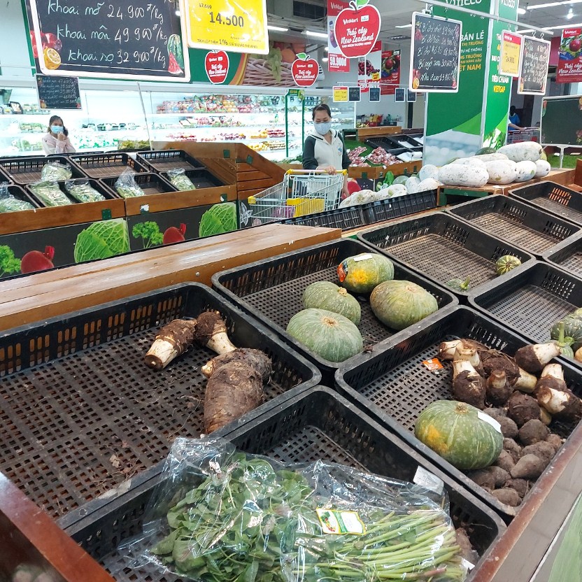 | Trong chiều 8/7, có lúc quầy rau củ quả tại siêu thị Vincom Plaza 3/2 (Quận 10) không còn đủ hàng .VGP/Nguyễn Kim |