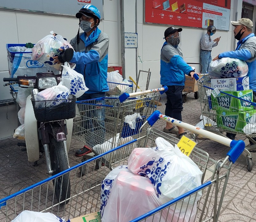| Nhân viên giao hàng tất bật để kịp thời phục vụ người dân. Ảnh: VGP/Nguyễn Kim |