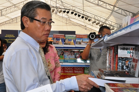 Ông Hứa Ngọc Thuận, Phó Chủ tịch UBND TPHCM tham quan các gian hàng sách |