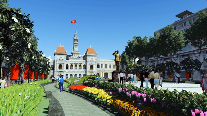 Trên trục đường Nguyễn Huệ sẽ tổ chức các chuyên đề nhạc nước, nghệ thuật 3D ở khu vực vòng xoay, bồn phun nước. Riêng khu vực Tượng đài Chủ tịch Hồ Chí Minh, Thành phố sẽ tiến hành trồng hoa và cây xanh hai bên vỉa hè.