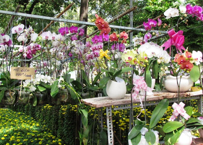 Năm nay, hoa địa lan, lan hồ điệp vẫn là những loại hoa được người dân TPHCM ưa chuộng do giá cả không quá cao, mà hoa trưng trong nhà những ngày Tết thì rất bắt mắt, màu sắc đẹp.