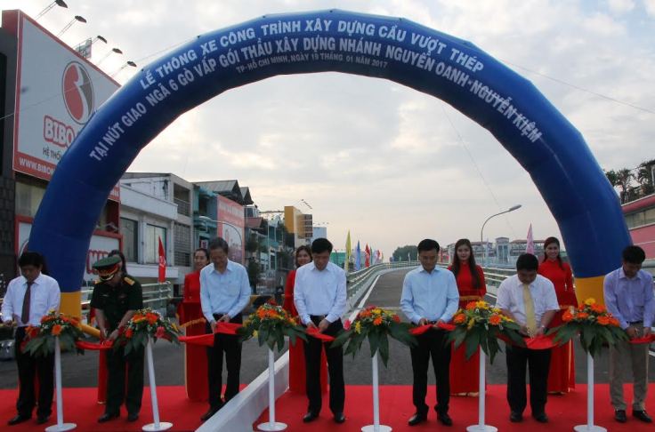 Nhánh cầu hướng từ đường Nguyễn Oanh đi Nguyễn Kiệm dài 247,7m, rộng 6m, gồm 7 nhịp liên tục, được khởi công ngày 4/9/2016, hoàn thành vượt tiến độ 2 tháng.