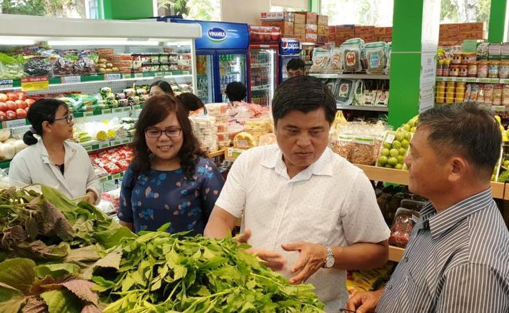 | Thứ trưởng Bộ NN&PTNT tham quan bên trong Co.op Food Đinh Tiên Hoàng. |