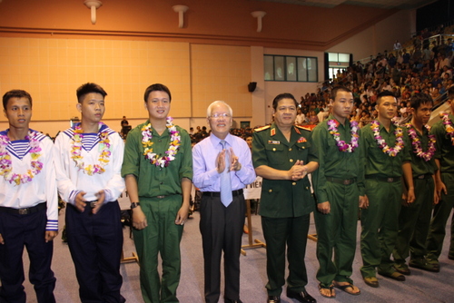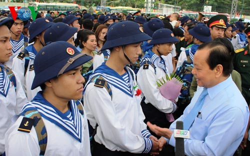 Thay mặt Quân chủng Hải quân, Đại tá Tạ Trung Đức, Chính ủy Lữ đoàn 957 Hải quân đã vui đón 190 chiến sĩ trẻ của TP mang tên Bác về Lữ đoàn 957 Hải quân, đồng thời cảm ơn Đảng bộ, chính quyền và nhân dân TPHCM hàng năm đã chi viện cho lực lượng hải quân những thanh niên ưu tú tham gia bảo vệ toàn vẹn chủ quyền biển đảo thiêng liêng của Tổ quốc. Sau phần nghi lễ, ông Lê Thanh Hải cùng lãnh đạo các đơn vị quân đội và các quận, huyện của đã đến tặng hoa, chúc mừng từng tân binh trẻ trước khi lên đường về các đơn vị.